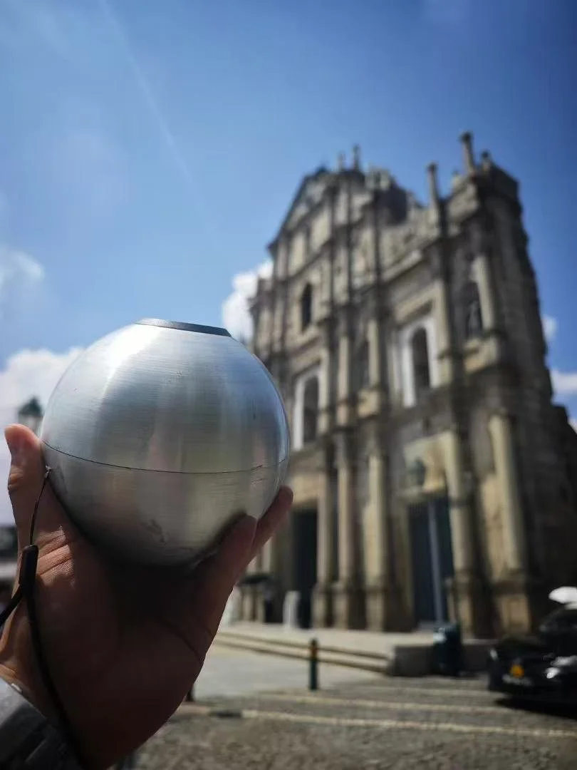 Simply holding this humming silver sphere creates a peculiar sense of ritual—you yourself become part of the act. Passersby watch with curiosity, transforming into an audience, while you, the participant, become the performer.