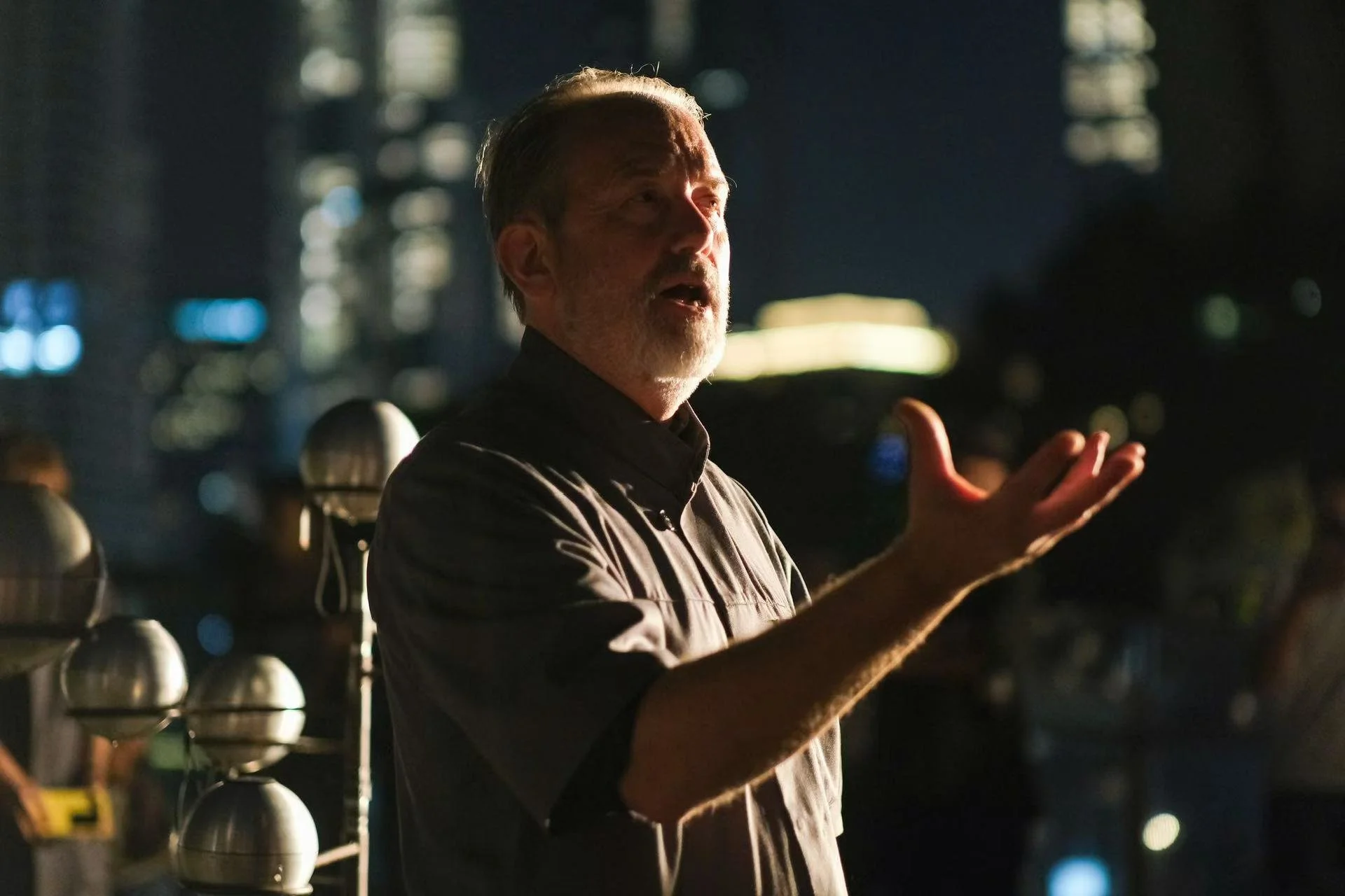 His monumental outdoor work Chorus has been touring nationally and internationally since 2013 with appearances as part of major outdoor programmes organised by Lieux Publics in Marseilles, the National Theatre, WOMAD, the Southbank, Hong Kong International Arts Festival, Georgetown Festival in Penang, ZAT Montpelier, Warsaw Contemporary Music Festival, Connected Cities in Seoul, South Korea, a Circulate tour of four London venues and at festivals in Melbourne and Romania to name a few. Chorus was shortlisted for the 2014 BASCA Composer of the Year award.